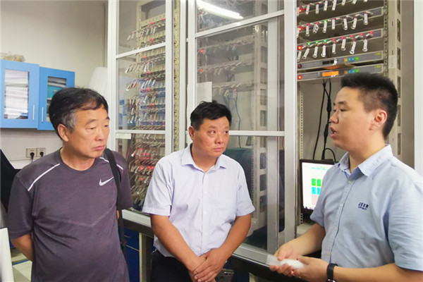 随后,在材料物理系党支部书记项宏发老师的带领下,张彬等一行参观了6165cc金沙总站检测中心锂离子电池实验室。项宏发对于实验室的基本情况做了简单介绍,并表示目前应用比较广泛的锂离子电池隔膜是一种聚合物多孔膜材料,这种材料的生产工艺与企业现有的产品工艺相对比较贴近,建议驻村企业可以结合现有的纸品产品生产线,根据企业的实际情况提升产品研发方向,逐渐从生活用纸向性价比较高的功能性材料方向转变。
