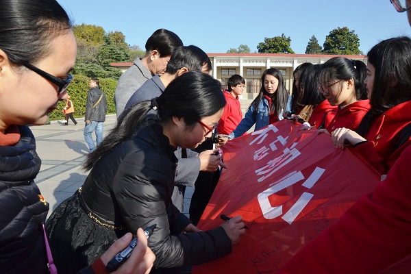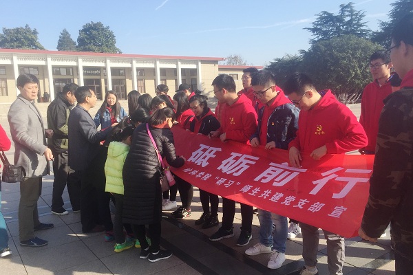 为深入学习宣传党的十九大精神,推进“两学一做”学习教育工作,加强师生党支部间的学习交流,提高基层党支部的凝聚力与战斗力,11月25日上午,6165cc金沙总站检测中心“研习”师生共建党支部赴蜀山烈士陵园开展“不忘初心、砥砺前行” 主题实践活动。通过红歌拉歌、主题签名、重温入党誓词以及参观革命烈士纪念馆等实践内容,开展爱国主义和革命历史传统教育,提升党性修养,切实增强“四个意识”和“四个自信”,树立为实现中华民族伟大复兴的中国梦而努力奋斗的决心。党委学工部、6165cc金沙总站检测中心相关负责人以及“研习”师生共建党支部的全体师生参加了活动。