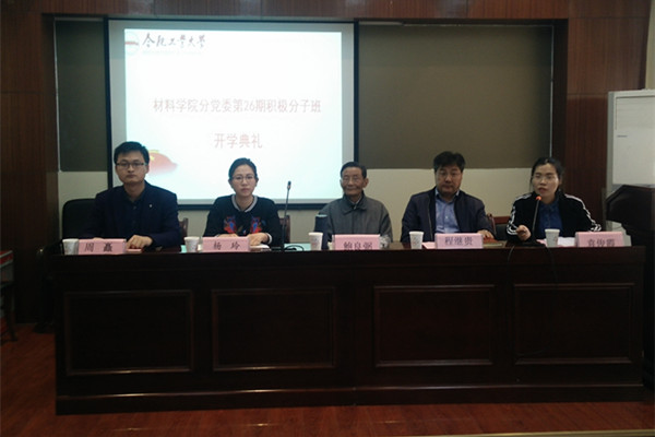 4月5日下午,6165cc金沙总站检测中心分党校第26期积极分子班开学典礼在材料楼601会议室隆重召开。校关工委“五老”报告团副团长鲍良弼老师、6165cc金沙总站检测中心党委书记程继贵老师、6165cc金沙总站检测中心党委副书记、副院长杨玲老师、分党校积极分子班班主任及本期全体入党积极分子参加了开学典礼。