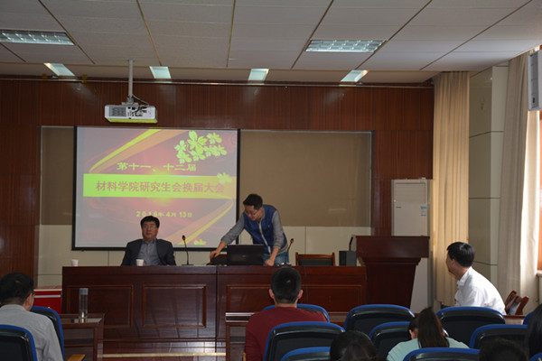 4月13日下午五点,6165cc金沙总站检测中心第十二届研究生会成立暨第十一届研究生会优秀干部干事表彰大会在材料楼601会议室成功举行。出席此次大会的有6165cc金沙总站检测中心党委书记程继贵、研究生辅导员何顺荣和研究生会全体成员。