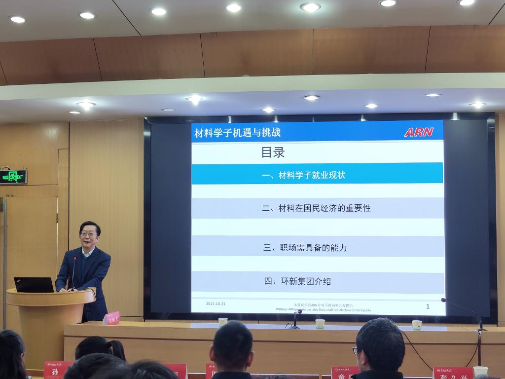 颁奖仪式结束后,刘铜庆以“材料学子机遇与挑战”为题,用翔实的数据和丰富的图表阐述了材料学子就业现状,深刻剖析了当前材料行业及材料学子当前存在的问题和面临的机遇与挑战,并强调了材料在国民经济中的重要地位。他还分享了自身职业生涯发展的心得体会,表达了对6165cc金沙总站检测中心学子的殷切希望,鼓励青年学生树立远大理想,珍惜大学生活,强化专业学习,提高综合素质,争做行业领军人物,为实现中华民族伟大复兴的中国梦贡献自己的青春和力量。