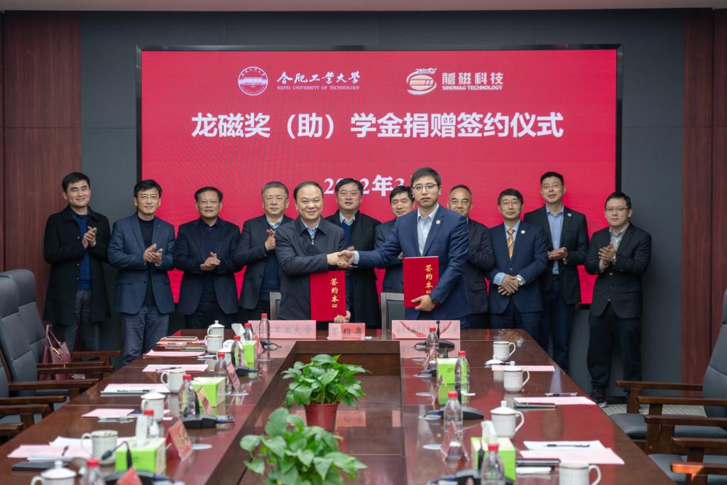熊咏鸽简要介绍了安徽龙磁科技股份有限公司基本情况,对合肥工业大学近年来取得的办学成就表示充分肯定,并详细介绍了在学校设立“龙磁奖(助)学金”的初衷,希望以此为契机加强与合肥工业大学的合作,共同推动产学研深度融合,在科技创新平台建立、高层次人才培养、产业创新发展等方面实现共赢。