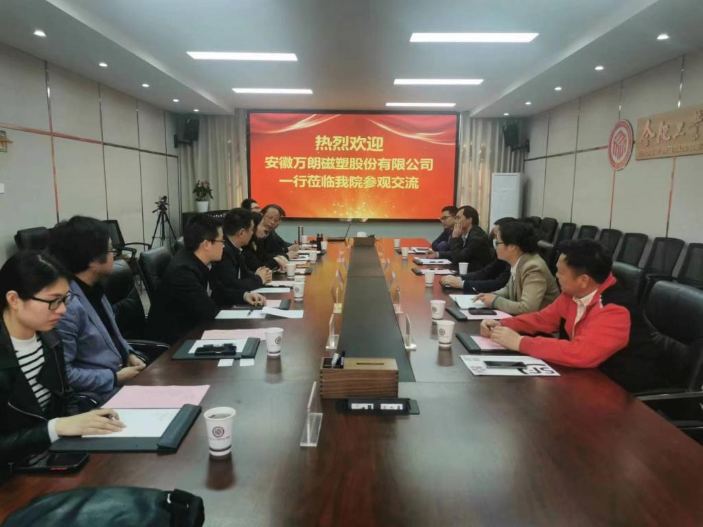 3月10日,上市公司安徽万朗磁塑股份有限公司副总经理陈雨海一行到我院参观交流。6165cc金沙总站检测中心党委书记吕珺、副院长周如龙、党委副书记朱峰出席座谈会。