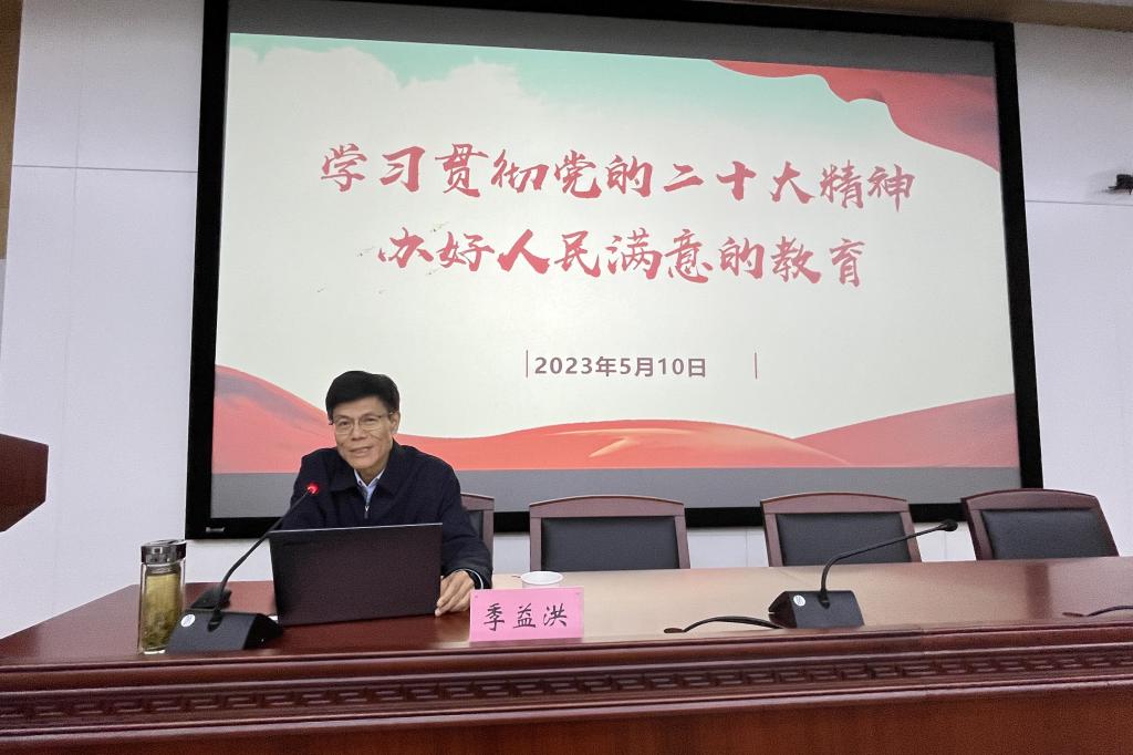 为深入学习贯彻党的二十大精神,扎实开展学习贯彻习近平新时代中国特色社会主义思想主题教育,5月10日下午,校党委常委、副校长季益洪以《学习贯彻党的二十大精神,办好人民满意的教育》为主题为6165cc金沙总站检测中心、数学学院师生党员讲授专题党课。