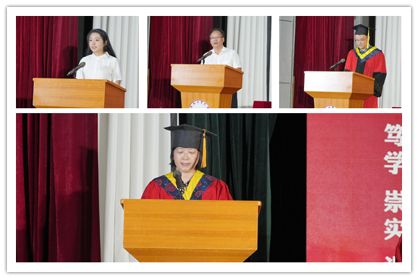 实验中心主任昝祥教授代表学院全体教师为毕业生送上真挚祝福,工大不仅是常为新的,而且是创造奇迹的地方,希望同学们“相信奇迹”,在人生舞台上尽情演出,共同演绎中国梦的华彩乐章。家长代表、粉体材料科学与工程2019级1班王梓安同学家长王小元先生,向学校和老师的辛勤培育致以深深的谢意,嘱咐青年学子无论身处何时,要懂得感恩;无论身处何地,要学会立身;无论身处何境,要做到坚强;无论身处何国,要坚持爱国。安徽省优秀优秀毕业生、2019级金属材料工程专业的张咪作为学位获得者代表发言,向大学期间所有关心、帮助和包容过我们的师长、亲友和同学们致以最真挚的感谢,她表示将秉承工大优良传统,志存高远、心存大志,担起“材料人”的时代大任,攻坚克难,砥砺奋进,成为中国特色社会主义事业合格的建设者和接班人。
