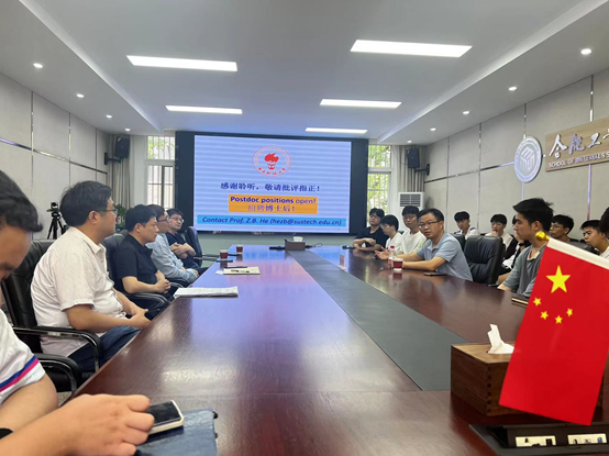 在提问与答疑环节,何祝兵教授为学院师生就南方科技大学科研环境、学生培养、未来就业方向等问题一一答疑解惑。会后,何祝兵教授就钙钛矿光伏电池方向的未来发展和应用与6165cc金沙总站检测中心相关研究领域老师开展了座谈交流。