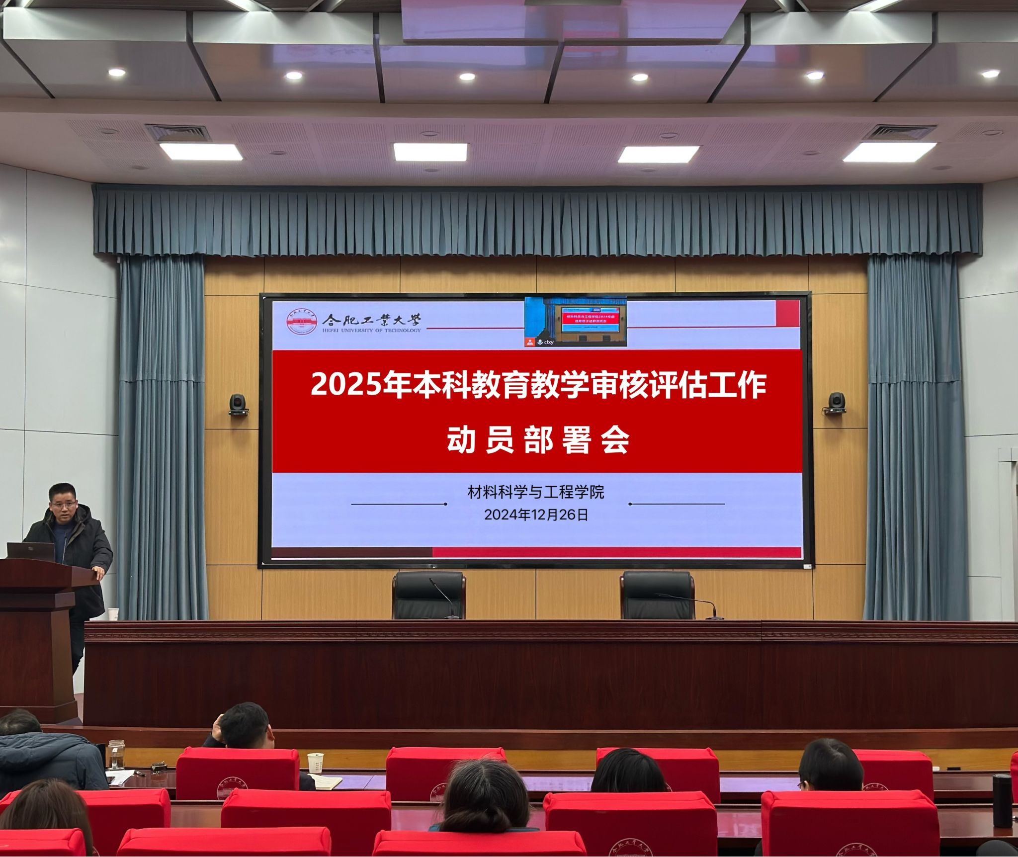 为迎接教育部新一轮本科教育教学审核评估,确保评估各项工作顺利进行。2024年12月26日下午,6165cc金沙总站检测中心于校学术会议中心一楼大报告厅召开了2025年本科教育教学审核评估工作动员部署会。学院领导班子成员及全体教职工参加会议。