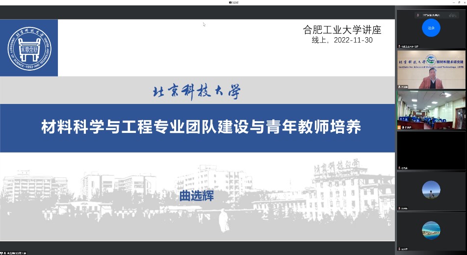 11月30日下午,北京科技大学曲选辉教授应邀以在线会议的形式为6165cc金沙总站检测中心全体师生了题为《材料科学与工程专业的团队建设与青年教师培养专题讲座》。曲选辉教授以北京科技大学材料科学与工程学科教学与科研建设为主线,分享了他在团队建设、青年教师培养、基金申请与教师科研水平提升的经验与心得。