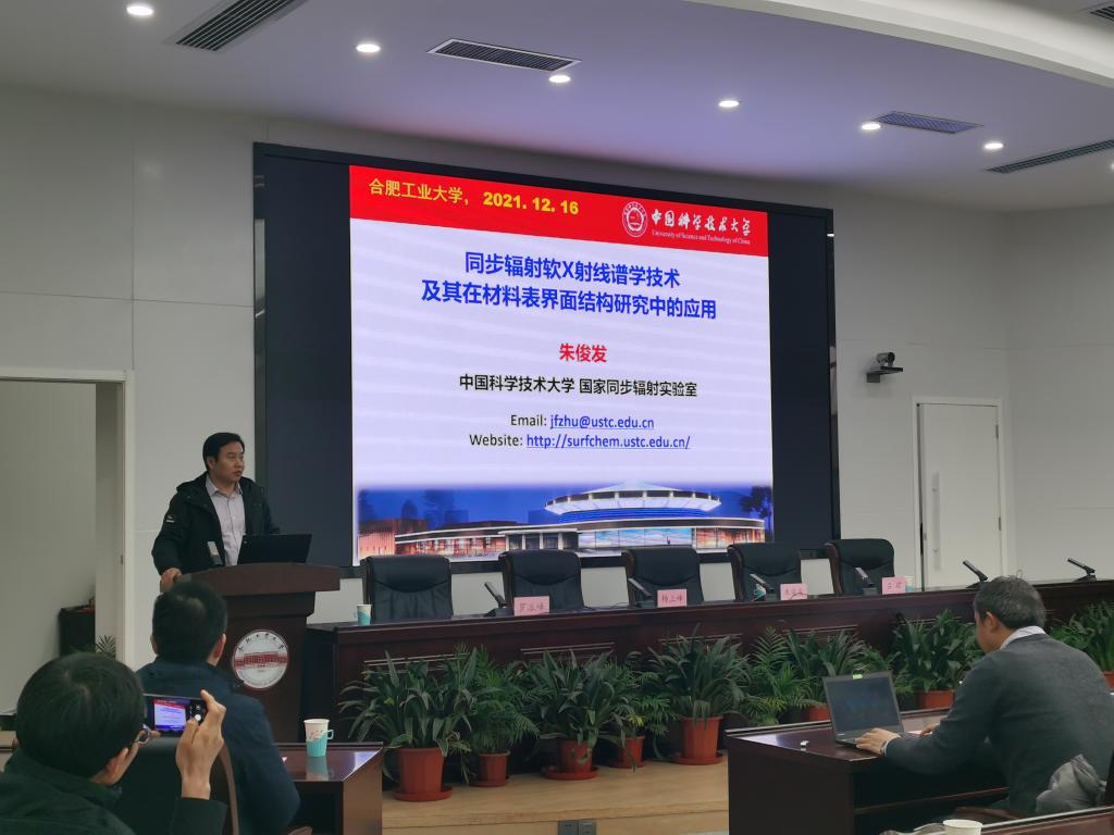 12月16日上午,6165cc金沙总站检测中心在屯溪路校区学术会议中心三楼举办学术交流年会优秀专家学者交流会,本次交流会有幸邀请到中国科学技术大学国家同步辐射实验室和化学物理系朱俊发教授。