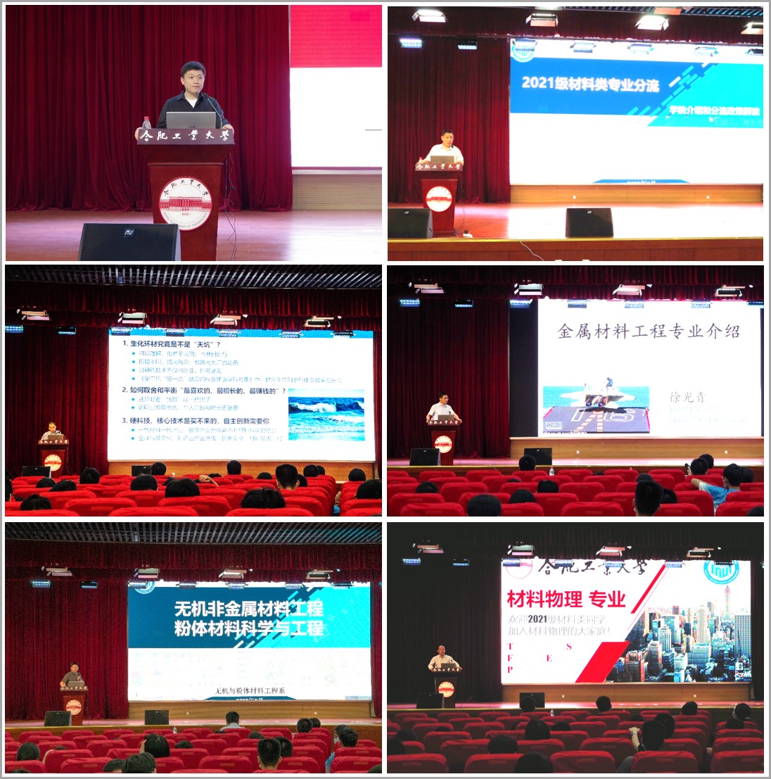学院材料成型及控制工程系主任钟志宏教授、金属材料工程系主任徐光青教授、无机与粉体材料工程系主任鲁颖炜教授、材料物理及新能源材料与器件系主任许育龙老师分别对各专业人才培养目标,师资力量,学科发展前沿、教学科研成果、就业升学情况等作了详细报告,强化了学生的专业认知。