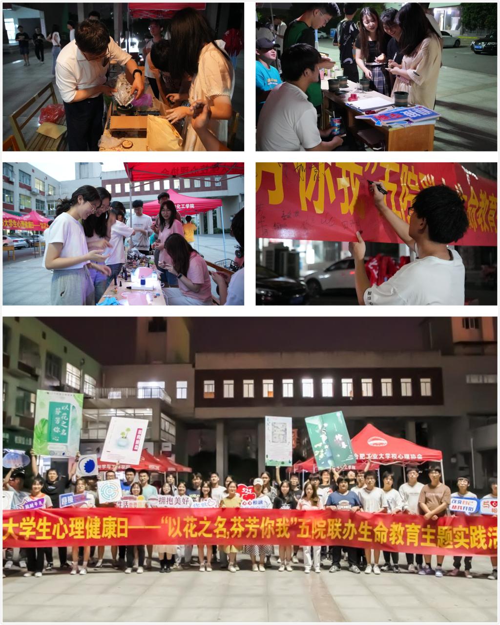 在大学生心理健康日来临之际,5月25日晚,由6165cc金沙总站检测中心、仪器科学与光电工程学院、汽车与交通工程学院、化学与化工学院、机械工程学院等五院联合举办的“以花之名,芬芳你我”生命教育主题实践活动在翡翠湖校区一食堂广场举办。