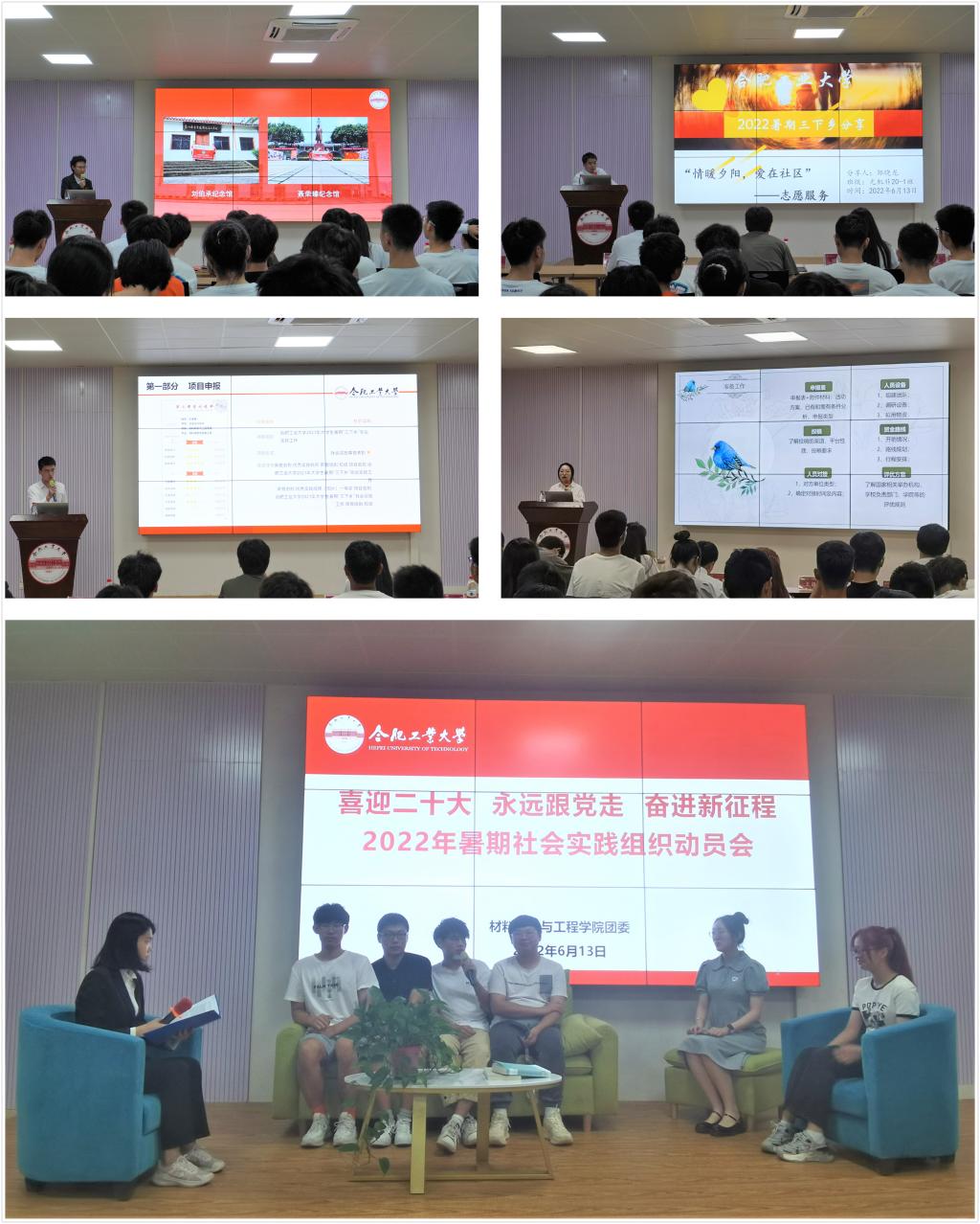 6月14日晚,6165cc金沙总站检测中心在翡翠湖校区综合楼一楼多功能厅举办了2022年暑期“三下乡”社会实践经验交流会暨工作动员会。学院团委相关老师、各年级辅导员和计划参与本年度暑期社会实践的同学参加本次会议。