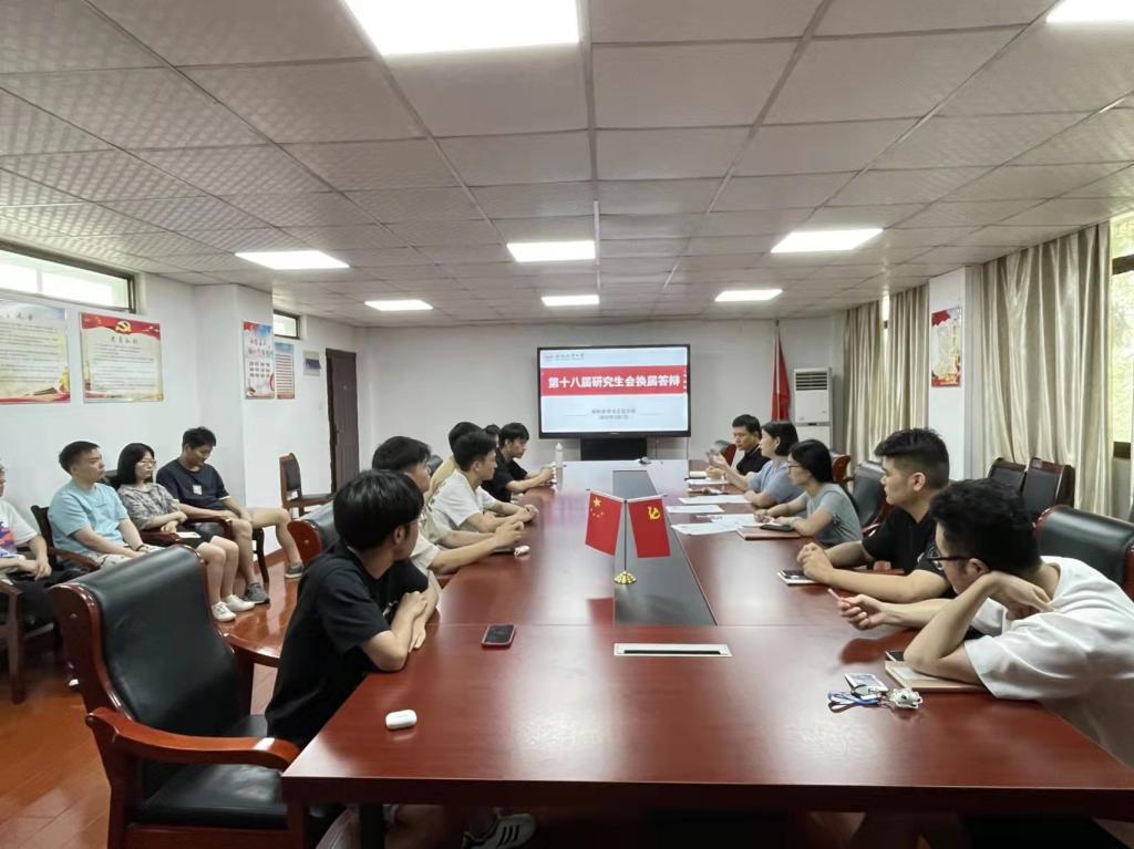 7月7日上午,6165cc金沙总站检测中心第十八届研究生会换届仪式在学院党员之家会议室顺利召开。学院党委书记吕珺、党委副书记兼纪委书记朱峰、研究生辅导员及研究生会相关负责同学参加此次换届大会。