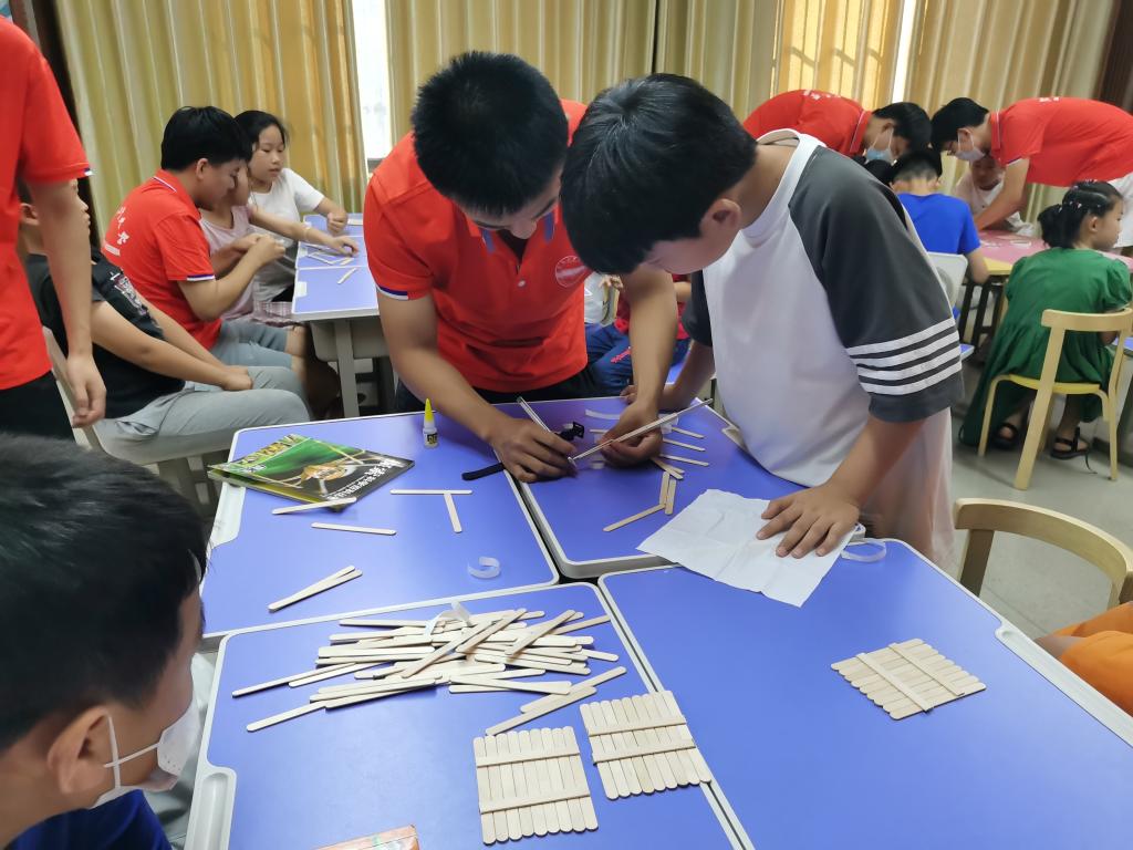 本次支教围绕“科普”主题,内容涵盖物理、化学、生物、工程制造等。实践团队跳出概念、公式、规律等传统理论宣讲式授课,通过“现象+实践+理论探寻”的教学模式,设计了“泡泡王国”“熔岩灯”等物化实验,在寓教于乐中传播科学文化知识和科研精神,提升孩子的学习兴趣。同时,通过带领孩子们亲手制作“电动小车”“悬梁桥”等,引导其亲身体验科学知识转化为科技成果的过程,点燃学生的求知欲,增强学生对科技强国内涵和科研创新的了解和向往。