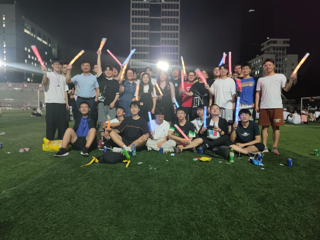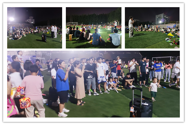 随着暖场音乐的缓缓响起,在被荧光棒和闪光灯簇拥的草地中央,同学们就地围坐,“数7”“蒙眼踢球”“你画我猜”“猜歌名”等互动游戏很好地调动了现场气氛,场上洋溢着欢快的笑声;“猜灯谜”“投壶”等传统游戏则引领大家进一步了解中秋风俗,同学们精彩的表现收获了场下观众的呐喊欢呼和真诚掌声。在开展趣味游戏的同时,主持人还组织了歌咏活动,浪漫动人的情歌、律动炸场的说唱,展现了同学们的个性与才华,一首《阳光宅男》将现场气氛推到了最高点。最后,在欢歌笑语中,全场同学用一首《孤勇者》展示迎接未来挑战的决心,同时也为本次素质拓展活动画上了一个完美句号。