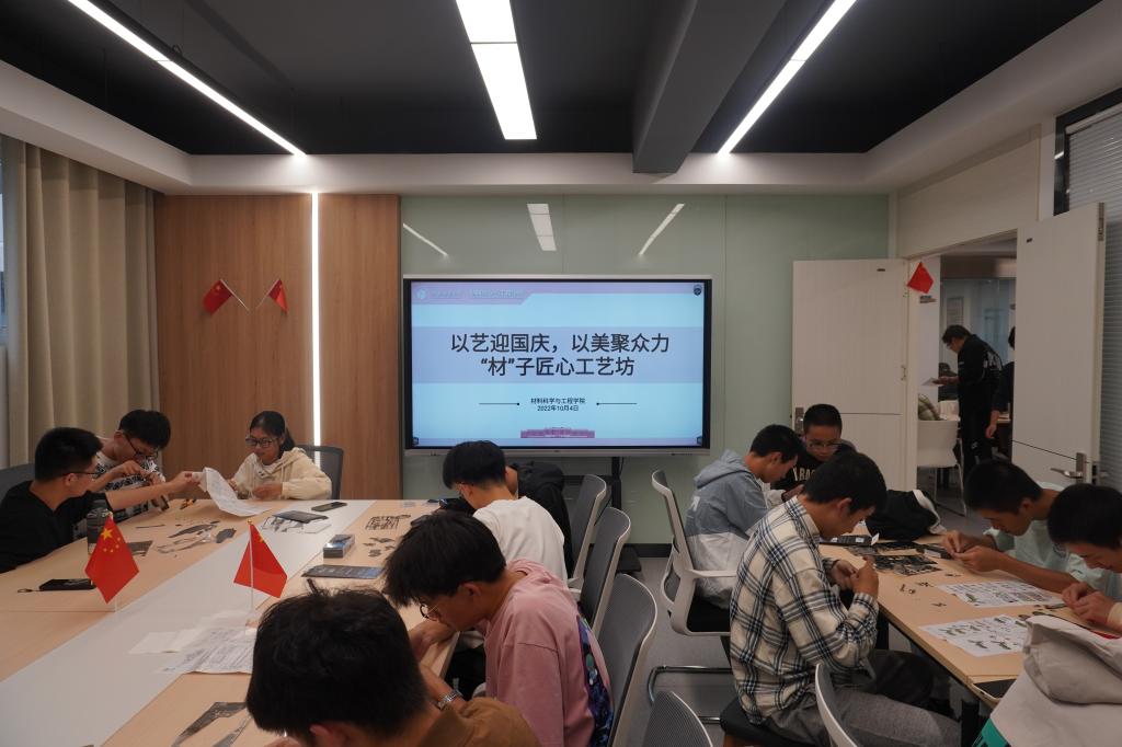为庆祝新中国成立73周年,喜迎党的二十大召开,培养学生认识美、体验美、感受美、欣赏美和创造美的能力,巩固落实美育教育工作,10月4日下午,6165cc金沙总站检测中心于翡翠湖校区一号楼、二号楼学生社区举办“以艺迎国庆,以美聚众力”材子匠心工艺坊活动。