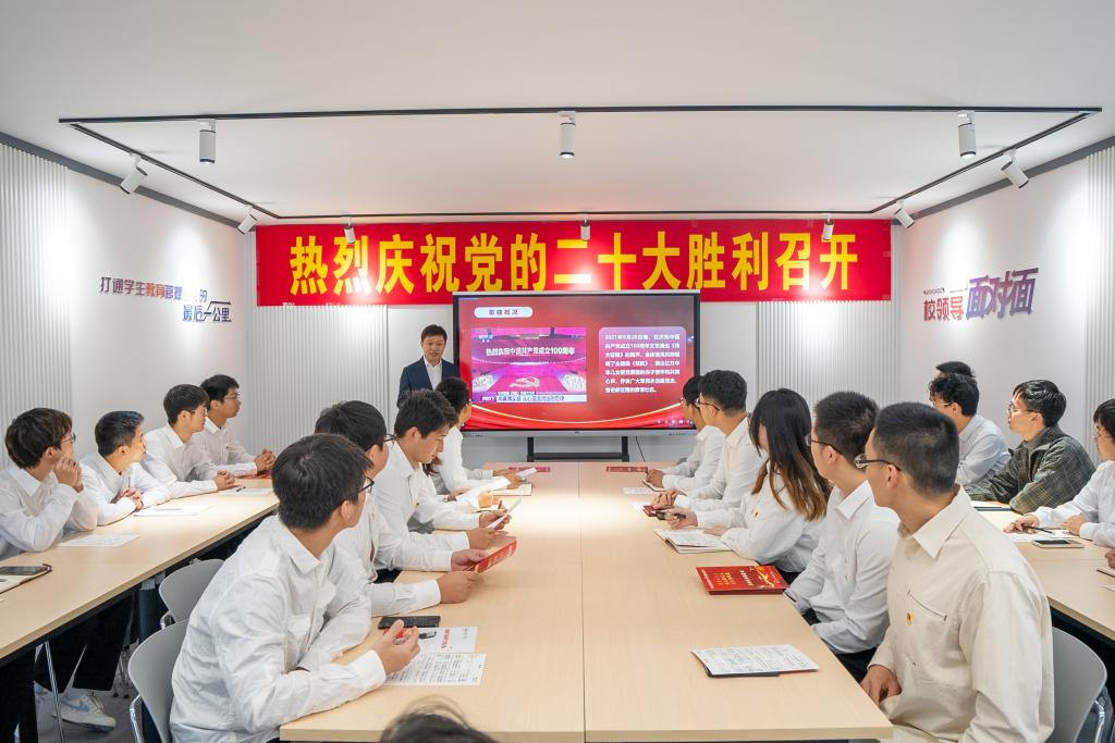 10月16日上午,6165cc金沙总站检测中心在屯溪路校区七号学生社区举办“喜迎二十大,奋进新征程”互动音乐微党课。学院相关负责人,党校第68期预备党员班、发展对象班学员代表,学生党支部代表参加活动。