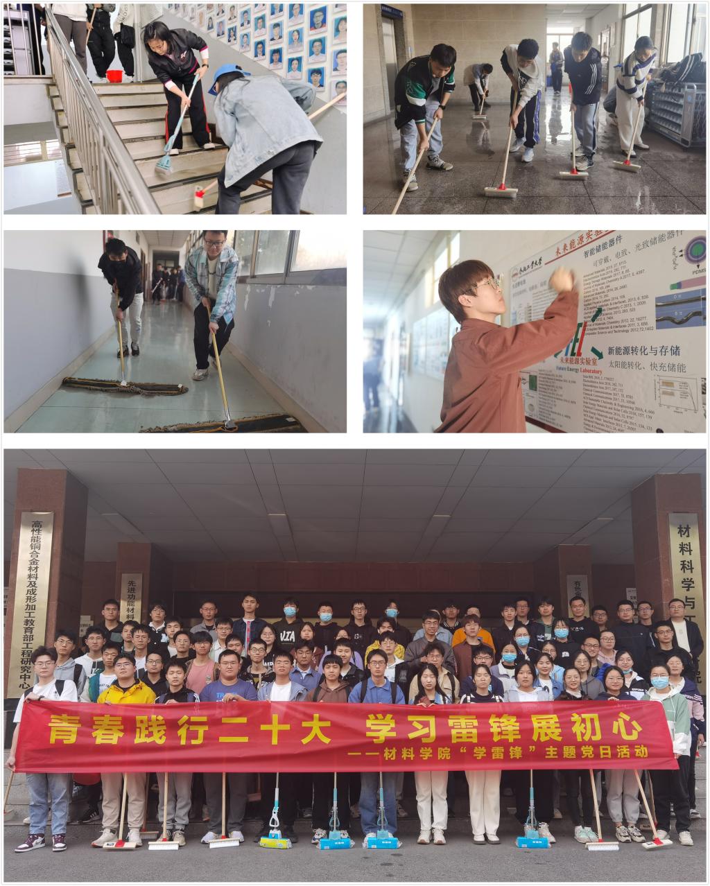 3月15日下午,6165cc金沙总站检测中心在材料楼组织开展了“青春践行二十大,学习雷锋展初心”学雷锋主题党日活动,集中清理材料楼公共区域卫生。学院相关负责人、全体本科生、研究生党支部学生党员、党校69期各学员班学员代表共200余人参与本次活动。