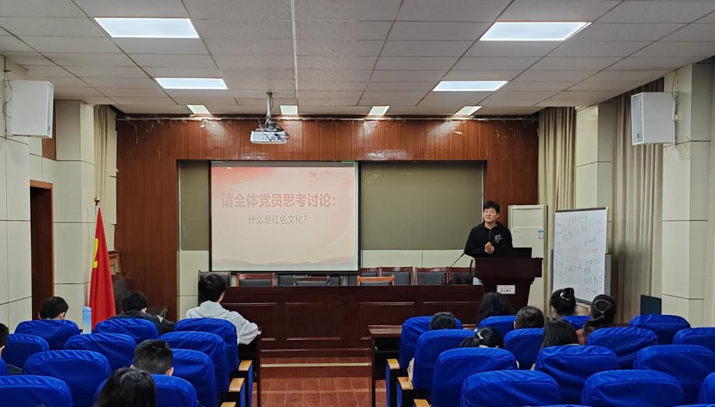 会议初始,占先强同志领学习近平总书记关于红色文化的重要论述,随即向全体党员提出了“什么是红色文化”的思考。随后,李盼盼同志积极地与同志们分享了自己的思考,并简单地阐述了红色文化的含义。随后,在占先强同志的带领下,通过例举一个个生动的红色历史故事,让全体党员学习到了在百年奋斗的历程中一代又一代中国共产党人不畏艰难险阻,直面风险挑战的红色精神,这是中华民族最宝贵的历史遗产和精神财富。最后,占先强同志总结道,在新的历史时期,传承革命精神、弘扬红色文化、增强文化自信,对我们新一代青年具有重大的历史意义和现实意义,广大党员同志要坚持系统观念,坚持守正创新和胸怀天下,推动建设更加美好的世界。
