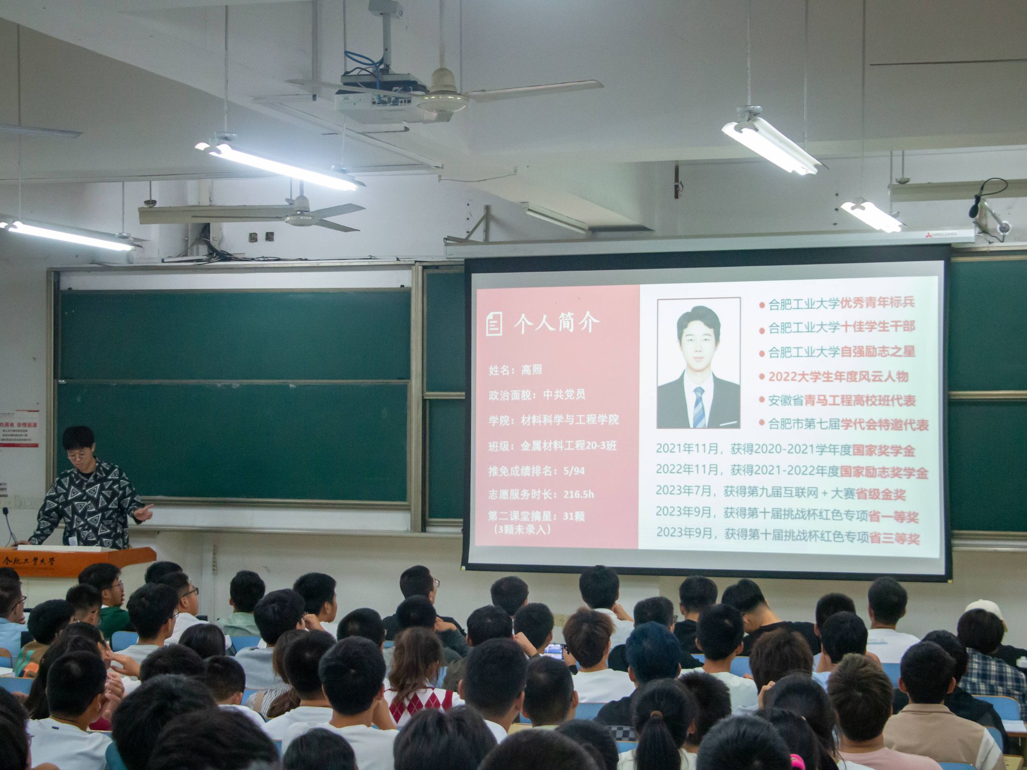 10月11日晚,6165cc金沙总站检测中心于3教202教室组织全体学生召开“第二课堂成绩单”制度宣讲会。我院2023级全体本科新生参加宣讲会,辅导员葛海涛担任主讲。