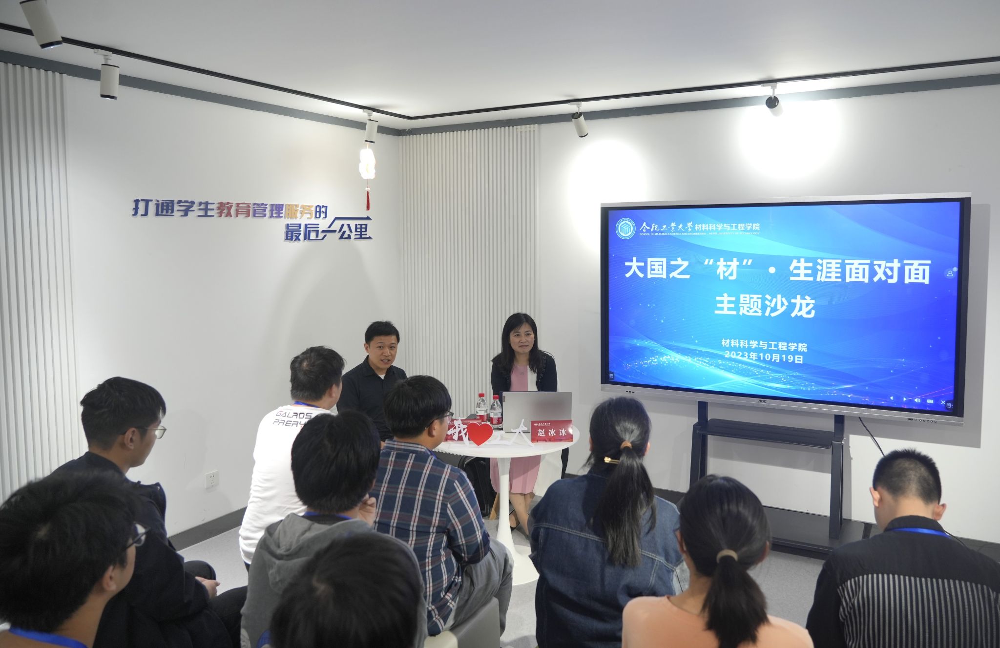 10月19日下午,6165cc金沙总站检测中心在屯溪路校区七号楼学生社区“沙龙空间”举办“大国之材——生涯面对面”主题沙龙活动。海信集团工会副主席、行政后勤中心副总经理、学院2000届校友赵冰冰担任分享嘉宾。学院党委副书记兼纪委书记朱峰主持,2024届毕业班辅导员和30余名学生代表参加活动。