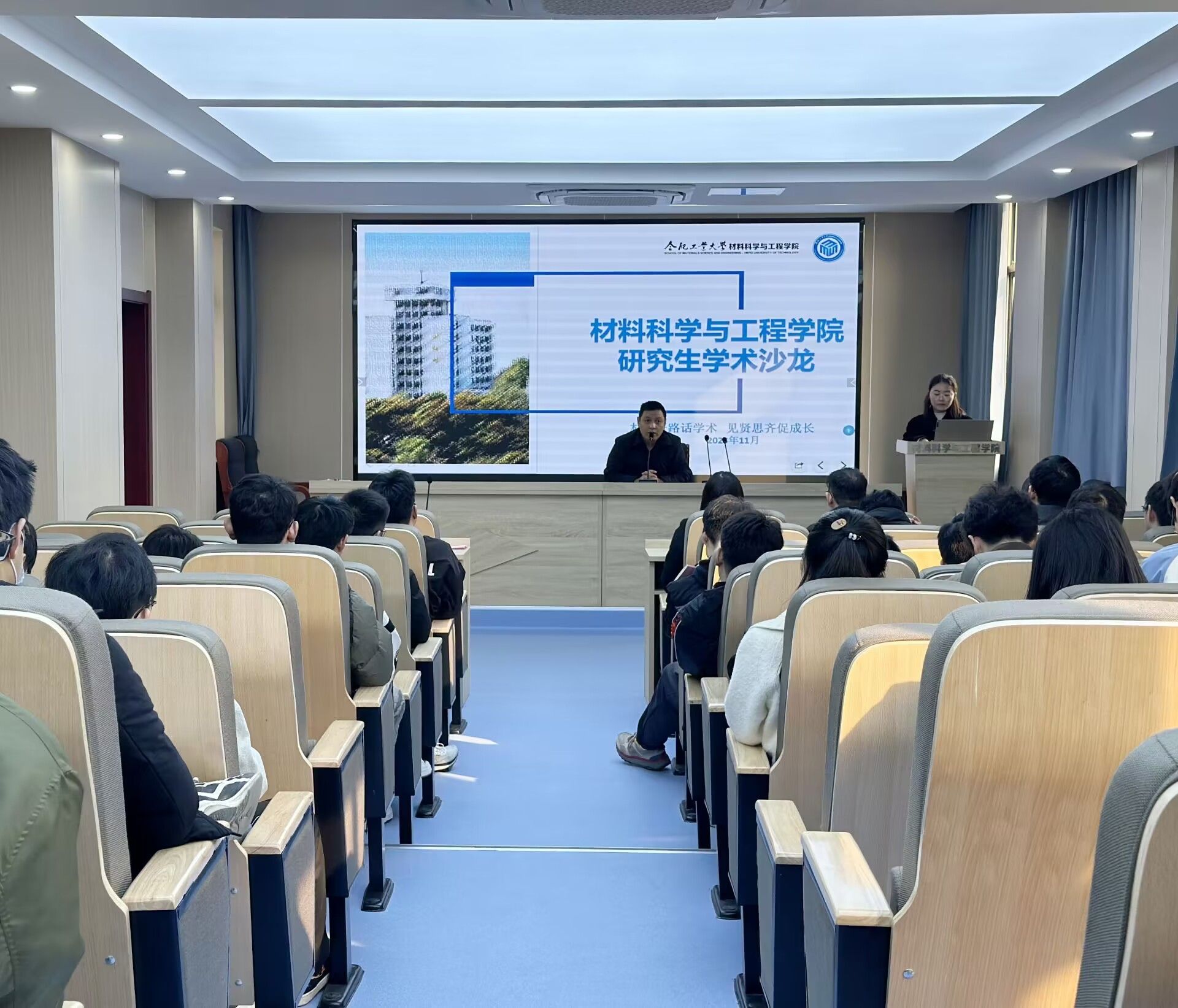 2023年11月29日下午,6165cc金沙总站检测中心研究生学术沙龙启动仪式暨第一期学术沙龙活动在材料楼601举行。学院教学院长周如龙及40余位研究生出席本次活动。