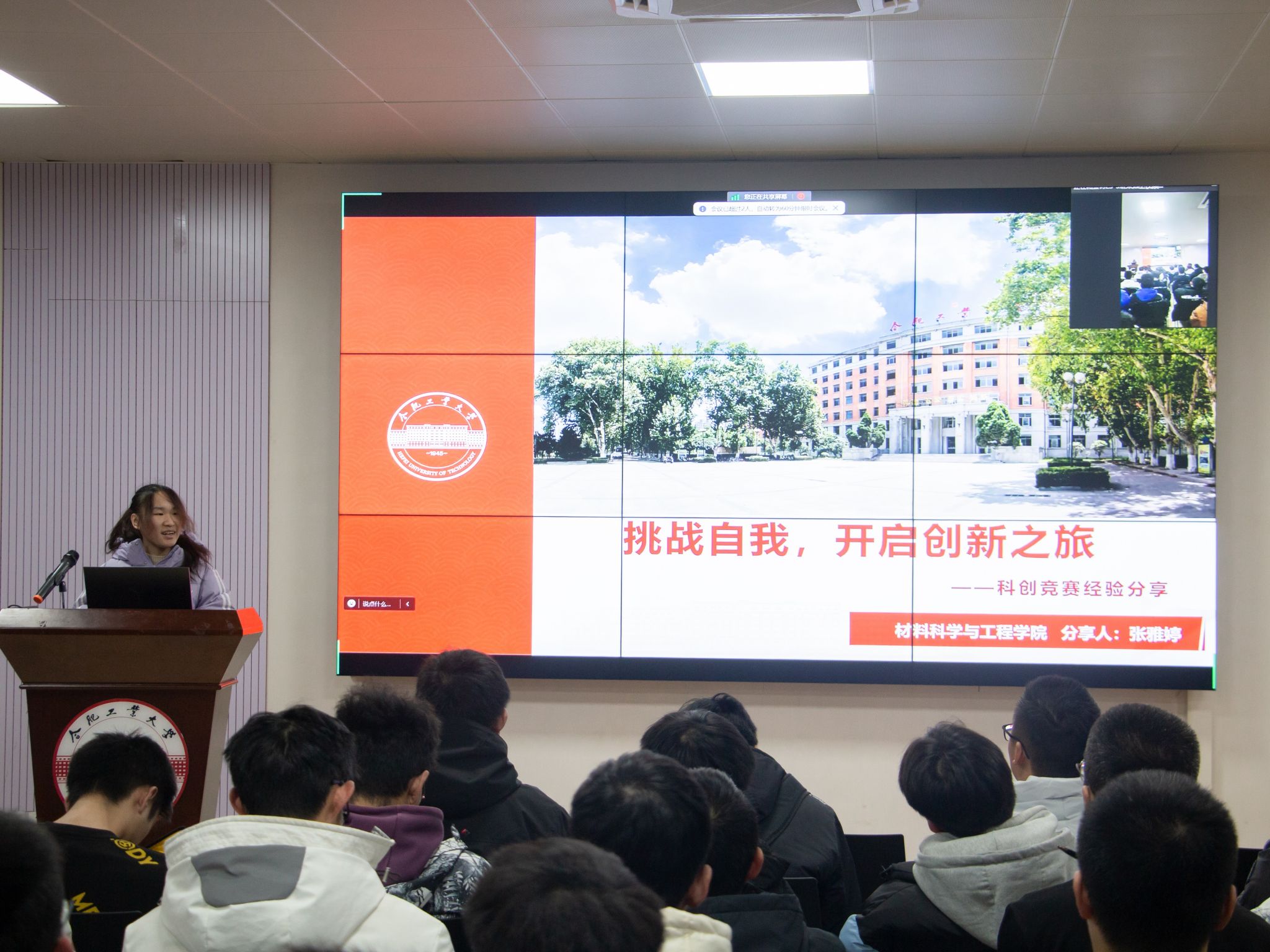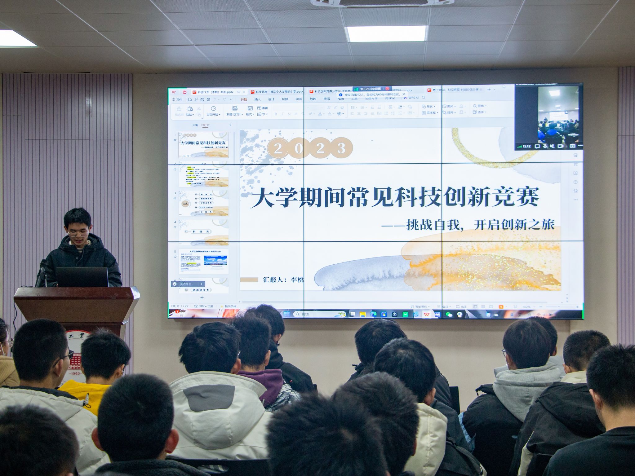 活动中,结合安徽省A/B类赛事和6165cc金沙总站检测中心学科特色和优势,6165cc金沙总站检测中心大学生科创中心精选大学期间部分常见赛事,围绕赛事基本信息、比赛内容、参赛途径、参赛意义和信息获取平台等方面展开详细介绍。随后,学院2020级优秀本科生张雅婷、康雯祺从自身参赛经历入手,分别就“大学生创新创业训练计划”“‘互联网+’大学生创新创业大赛”进行经验分享。按照赛事参与流程,两人依次从选题思路、项目构建、团队组建、项目撰写、答辩考察、实践凝练等环节进行讲解;通过实际案例的展示分析令现场同学对科技创新竞赛有了更为生动的认识。互动环节中,同学们踊跃提问,宣讲人员一一做出了详细的解答。活动最后,张雅婷说道,科技创新竞赛既是一场挑战,也是一场机遇,更是大学生活中一段难以忘怀、共同奋斗的精彩章节,鼓励同学们通过自己的努力,用力参与,用心体验,创造更多的可能、遇见更好的自己。