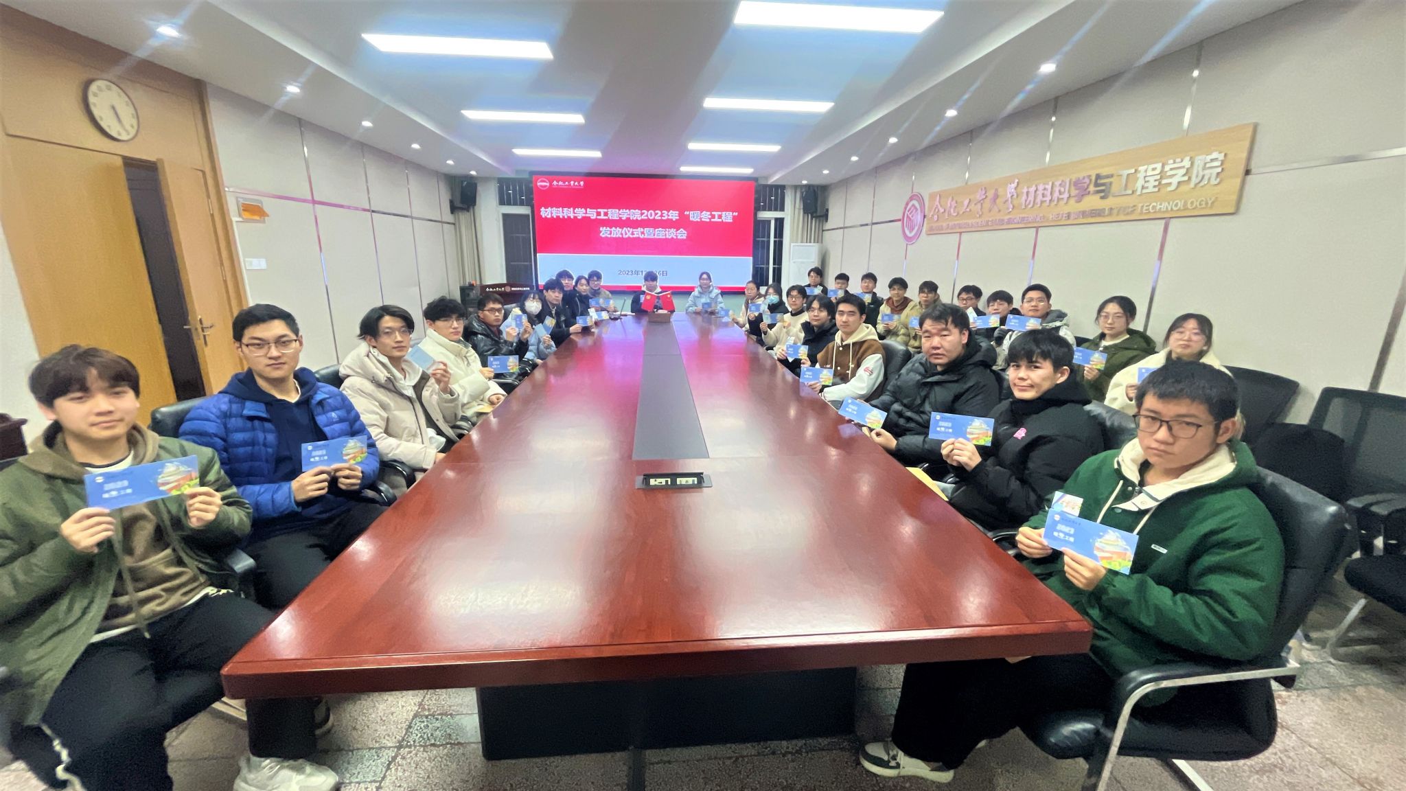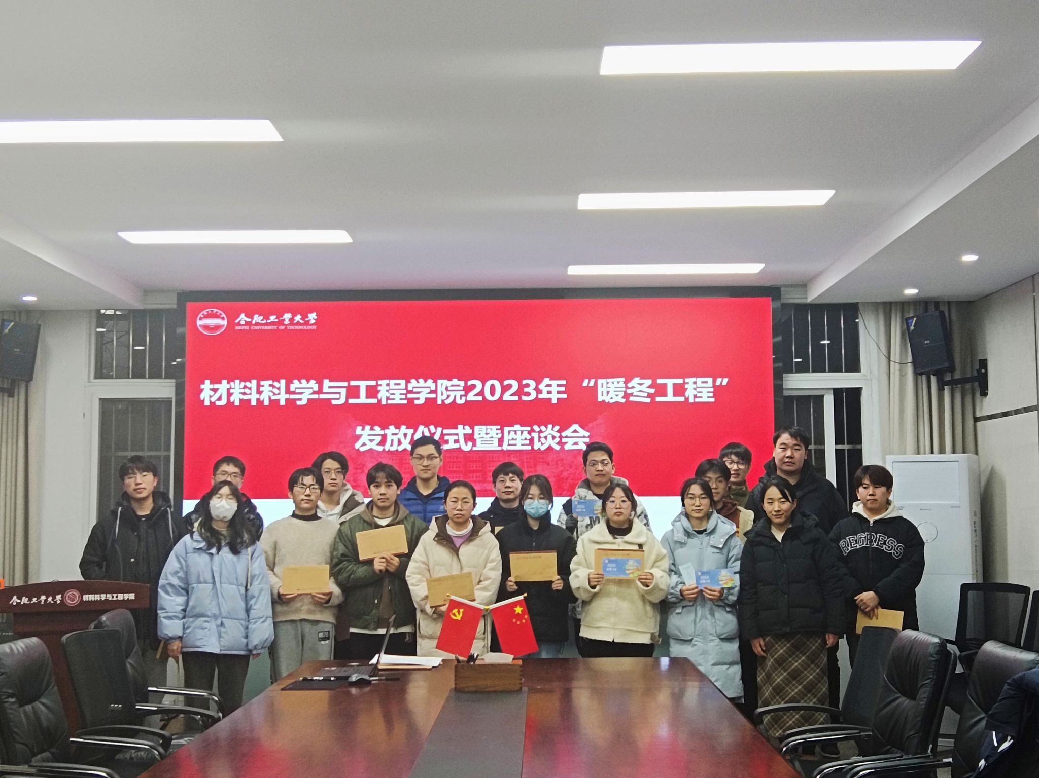 12月26日,6165cc金沙总站检测中心在学生事务服务中心210会议室举办“暖冬工程”发放仪式暨师生座谈会,学院相关辅导员、受助学生代表参加本次活动。