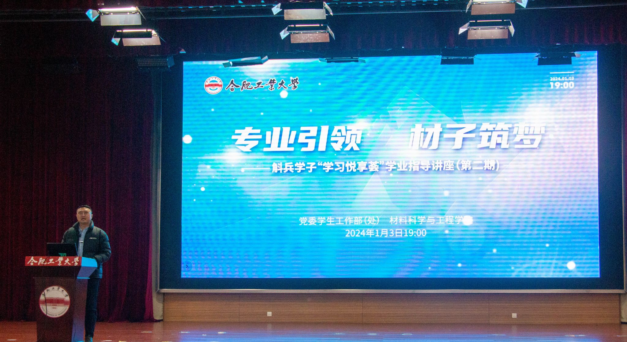 1月3日晚,由党委学生工作部(处)主办,6165cc金沙总站检测中心承办的第二期斛兵学子“学习悦享荟”学业指导讲座在翡翠科教楼A座二楼报告厅举行。本期讲座主题为“专业引领、材子筑梦”,6165cc金沙总站检测中心副院长周如龙、各系系主任和教师代表主讲,学院2023级本科生、对材料专业感兴趣的其他兄弟院系学生共400余人通过线上线下方式聆听讲座。