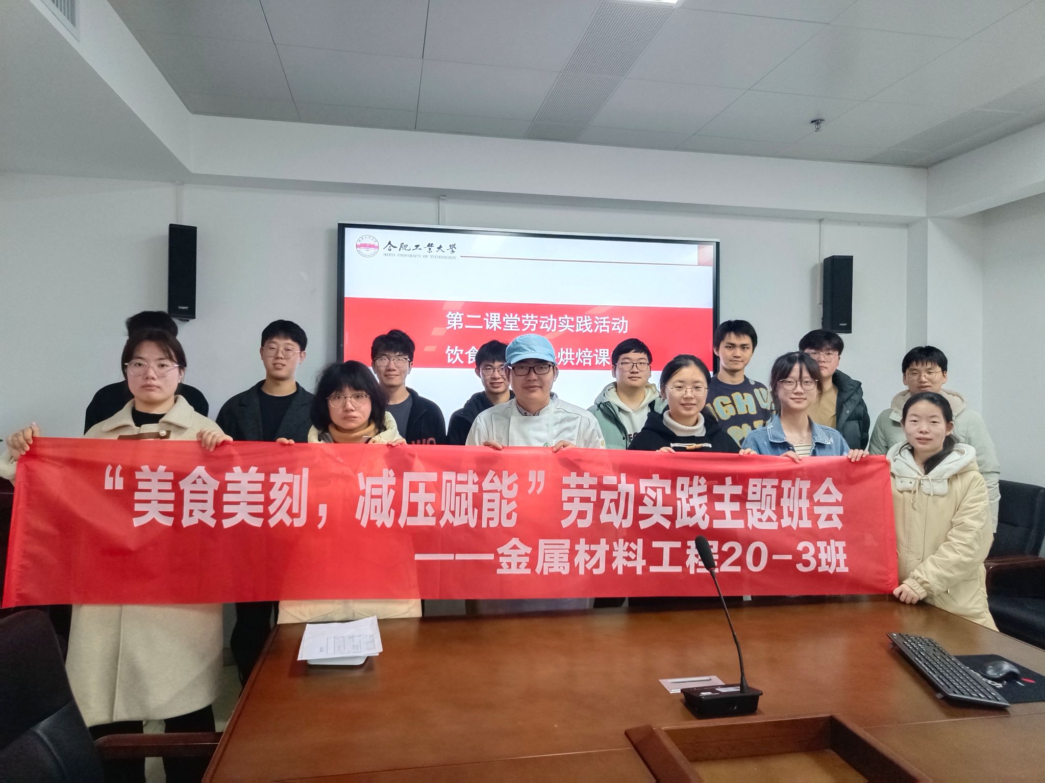 1月6日上午,6165cc金沙总站检测中心联合总务部饮食服务中心在屯溪路校区饮食新大楼404会议室、西点加工间组织开展了“美食美刻,减压赋能”劳动实践主题班会。学院金属材料工程2020级3班团支部学生代表参加本次活动。