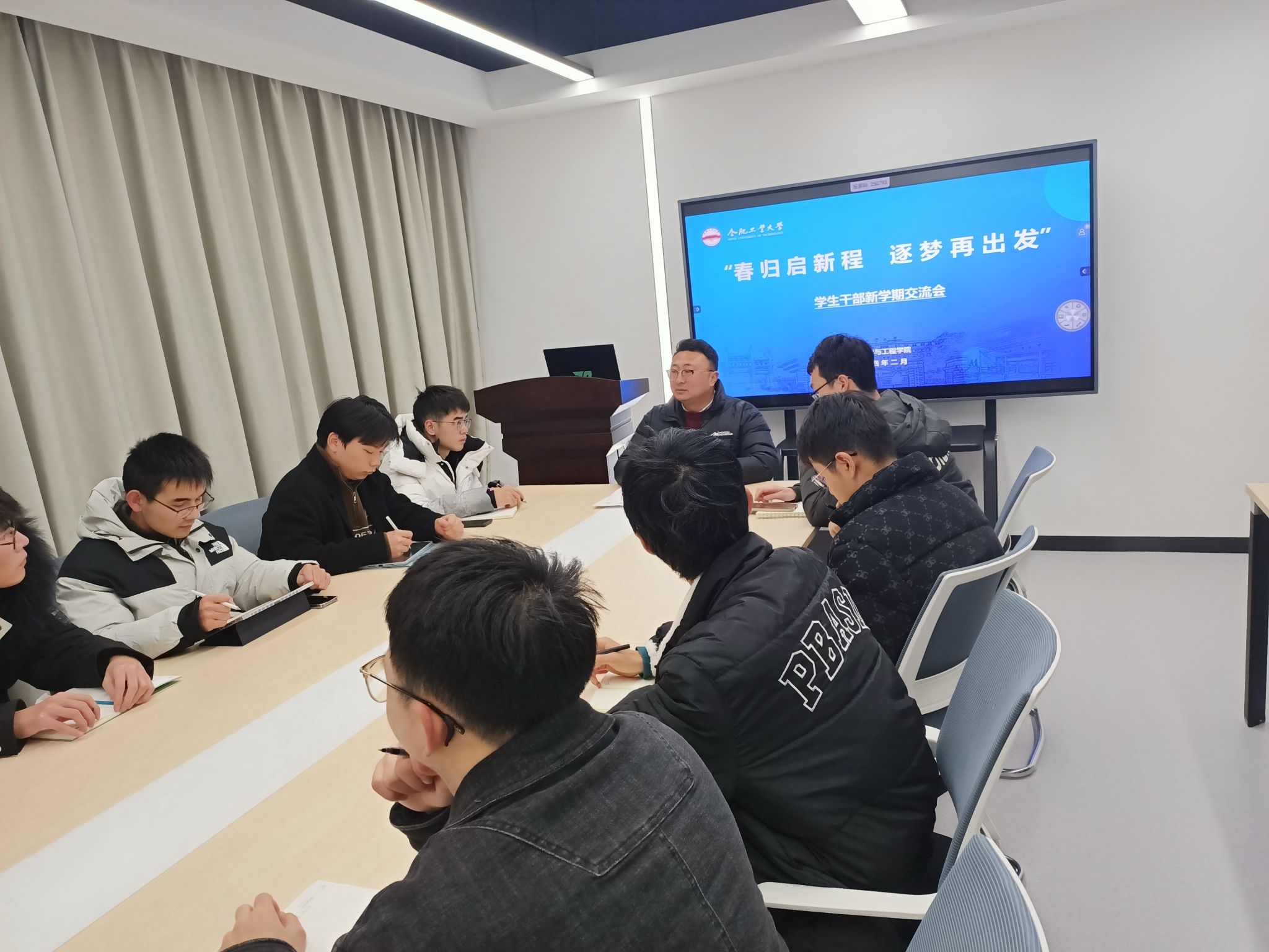 2月26日晚,6165cc金沙总站检测中心组织2023级主要学生干部于翡翠湖校区四号楼学生社区会议室召开“春归启新程,逐梦再出发”学生干部新学期工作交流会。