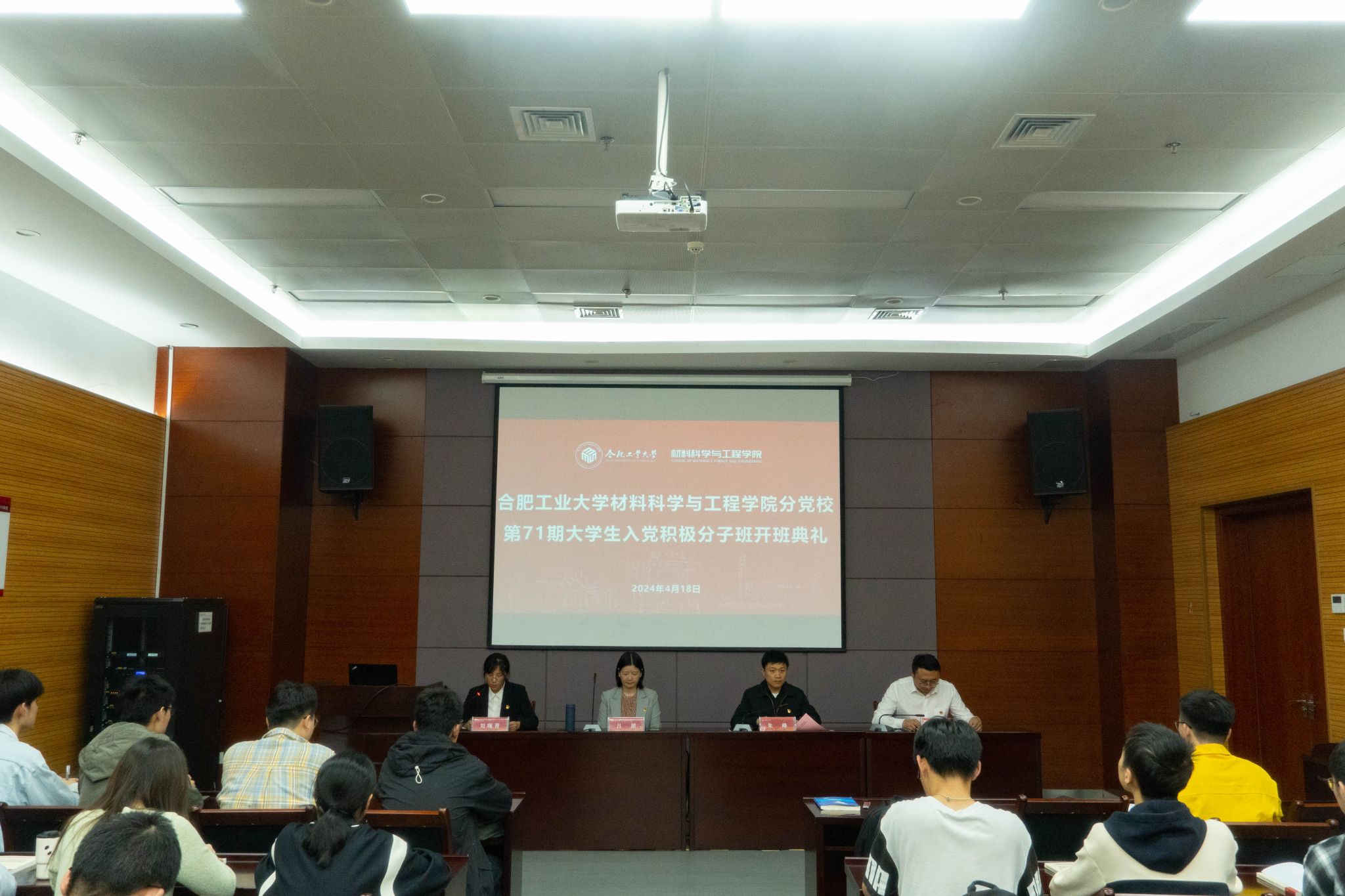 4月18日晚,6165cc金沙总站检测中心分党校第71期大学生入党积极分子培训班开班仪式暨党课第一讲于翡翠湖校区科教楼第五会议室顺利举行。学院党委、分党校相关负责人、班主任、年级辅导员及全体学员参加了仪式。