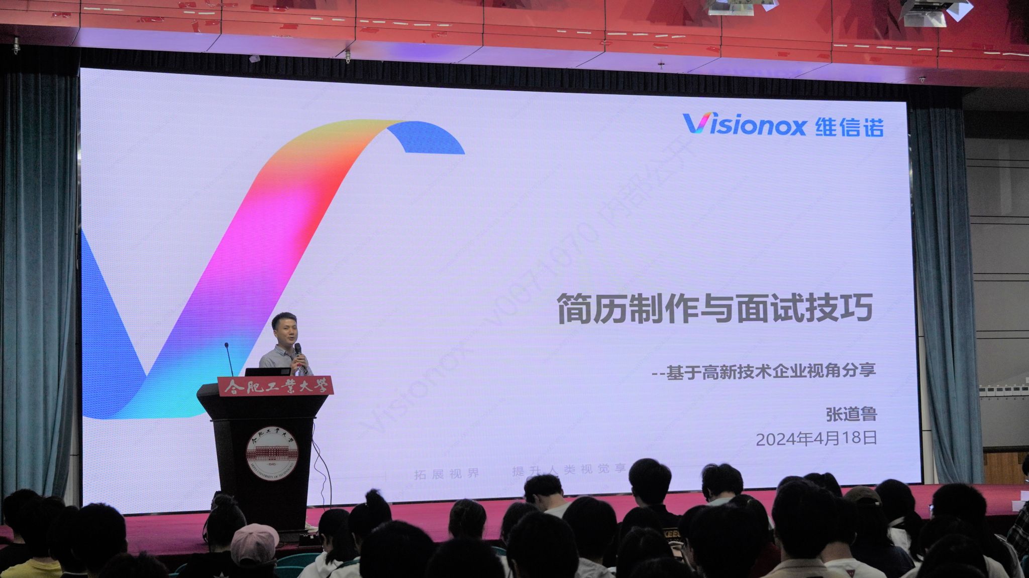 张道鲁以“简历制作与面试技巧”为题,基于高新技术企业视角,分别从“如何做一份好简历”、“如何准备面试”、“如何在面试中更好地展示自己”等三个方面进行了讲解,着重强调了求职就业过程中个人仪容仪表的重要性,分析了商务着装要求,提出了姿态管理建议。他借助心理测试问卷,引导同学们分析个人职业性格,希望全体同学能够充分认识自我,准确定位自我,平衡好“想做”和“能做”之间的关系,科学做出就业决策。最后,他勉励同学们明确职业目标,端正就业态度,不断提升就业技能和职业素质。整场讲座将求职案例和知识讲授相结合,内容充实、形式活泼,富有较强的亲和力,取得良好效果。