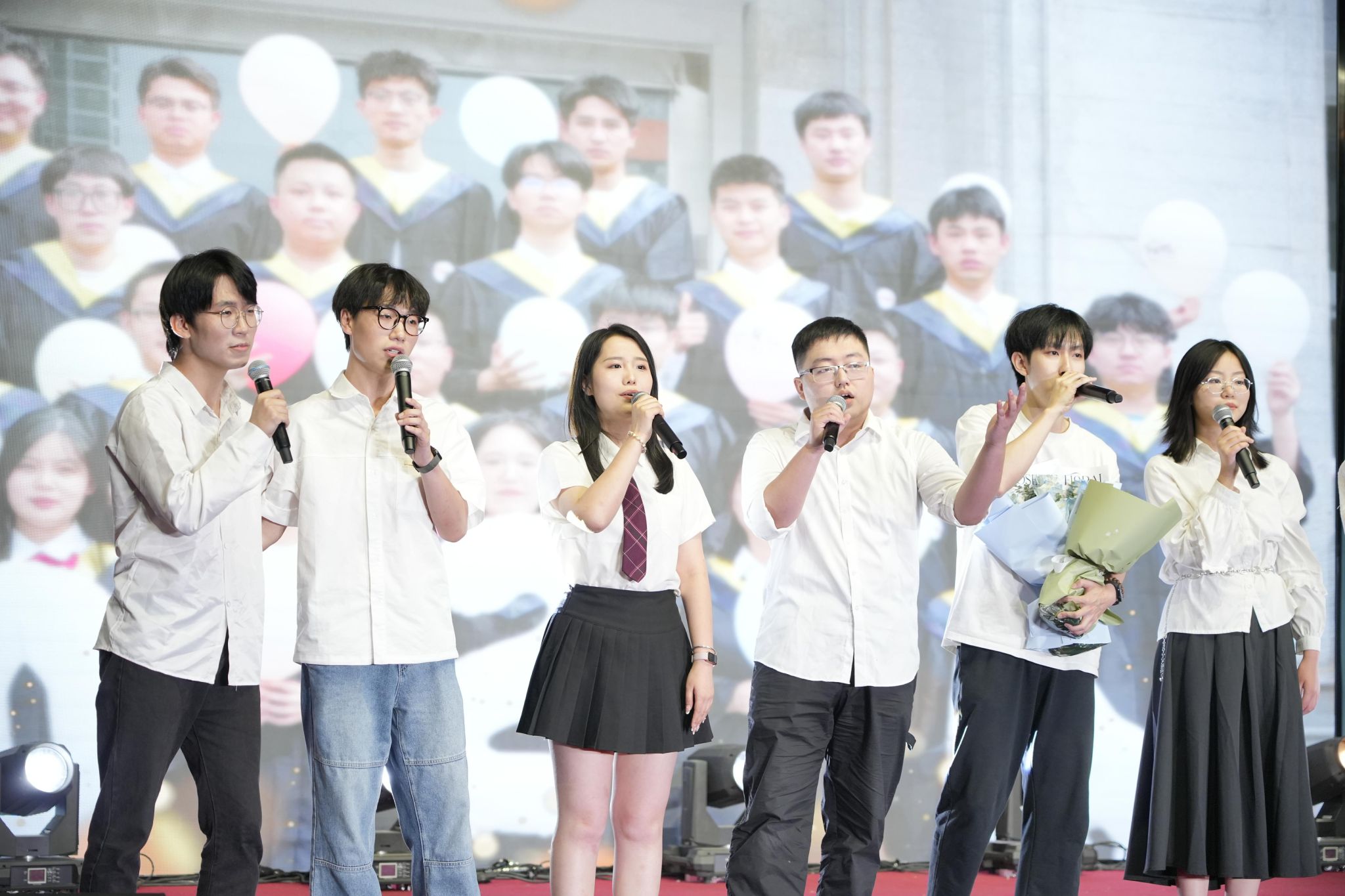 欢送会的最后,特别邀请学院党委副书记兼纪委书记朱峰演唱《此时此刻》,并代表学院向即将毕业的2024届毕业生们送上了诚挚祝福,希望同学们在最美的青春年华,一路向阳,脚踏实地实现人生理想。最后,晚会在全场师生合唱《朋友》中落下帷幕。整场晚会气氛温馨而愉悦,同学们用歌声、舞姿在舞台上展现出了材料学子的青春风采,表达了对2024届毕业生们的美好祝福。