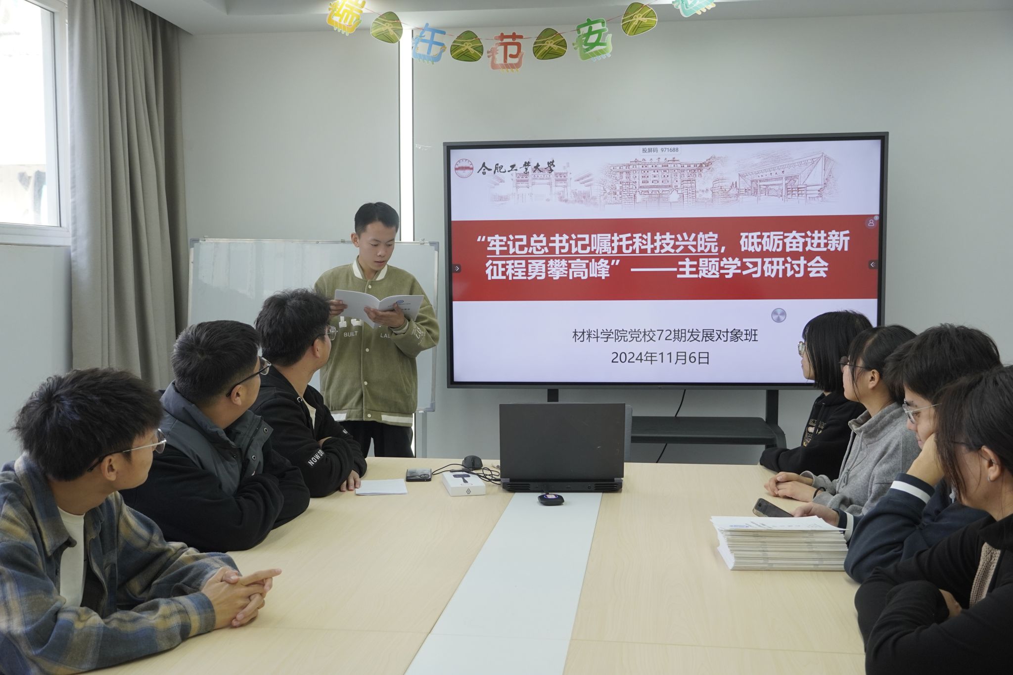 11月6日上午,6165cc金沙总站检测中心在翡翠湖校区4号学生社区组织开展了“牢记嘱托科技兴皖,砥砺奋进勇攀高峰”主题学习研讨会。学院党校第72期发展对象班全体学员参与本次研讨。