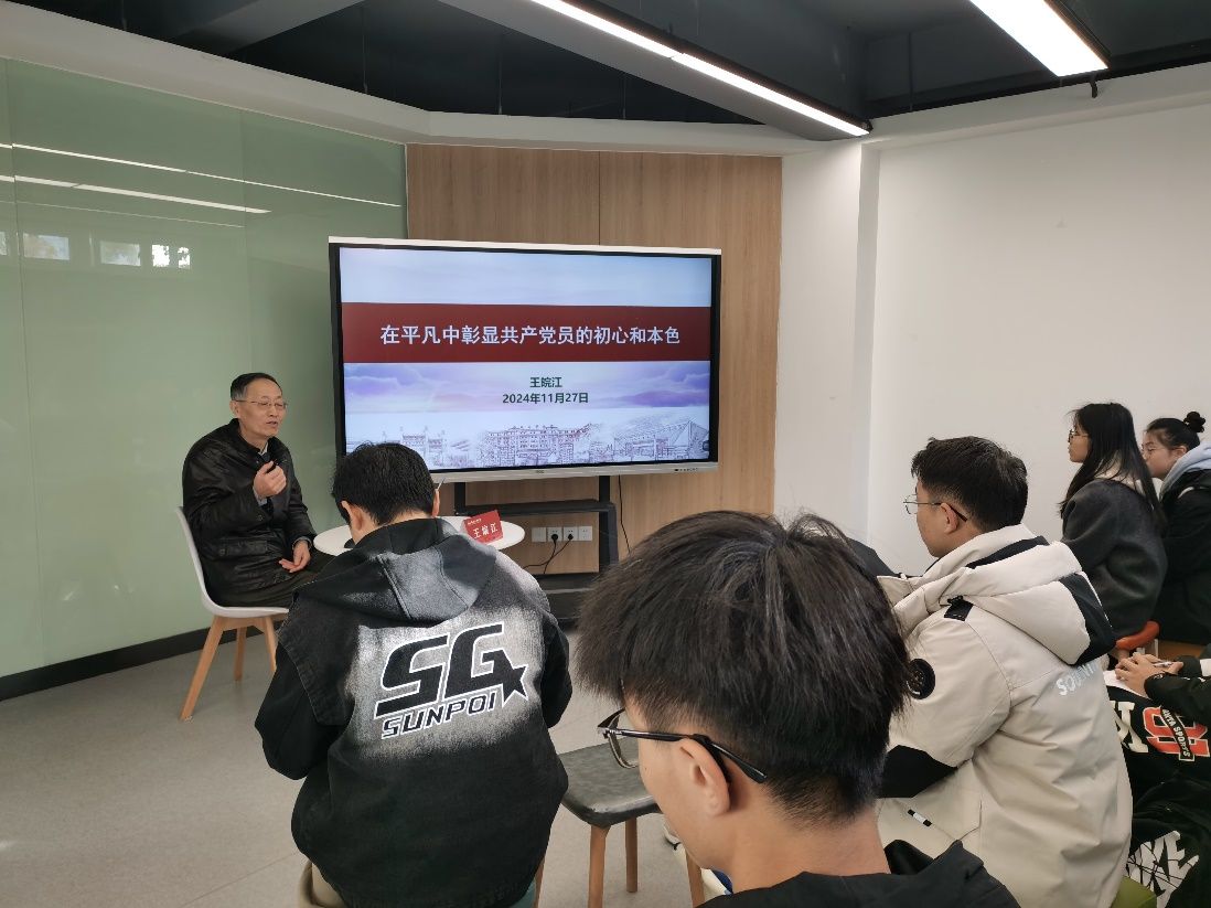 11月27日下午,全国“样板支部”、6165cc金沙总站检测中心本科生第二党支部在屯溪路校区五号学生社区沙龙空间组织开展了“我听师长讲党史”主题沙龙。校关工委常务副主任王皖江、学院本科生第二党支部学生代表20余人参加本次沙龙。