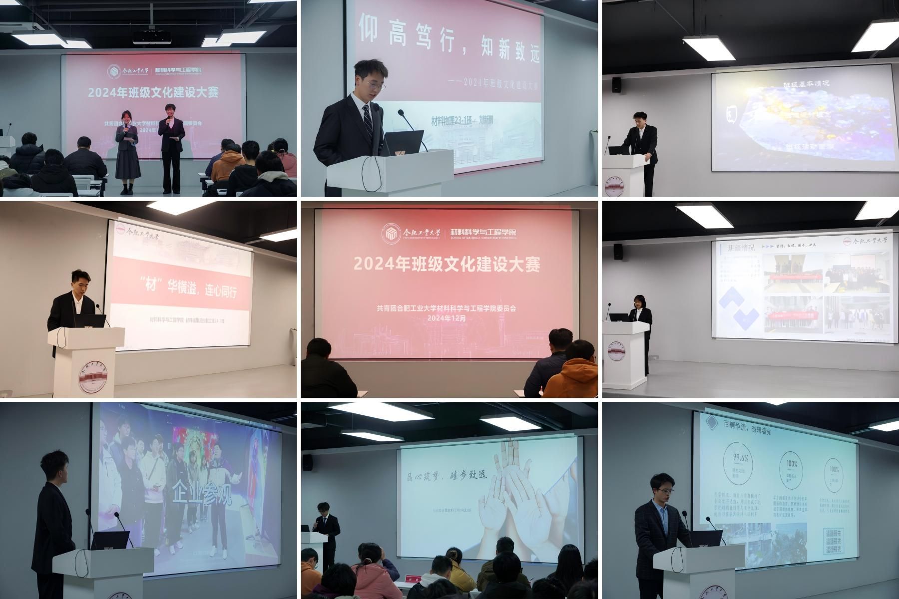 为增强班级成员的集体凝聚力和荣誉感,激发团体成员的创新能力,激发学院青年学子的朝气与活力,12月30晚,6165cc金沙总站检测中心于翡翠湖校区科教楼B座501报告厅开展“材韵聚华彩,班魂筑新篇”2024年班级文化建设大赛,学院辅导员、2023级和2024级学生代表参加本次活动。