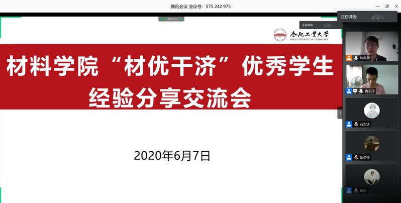 活动伊始,年级辅导员就本次线上分享交流活动的举办目的和3位优秀学生代表的基本情况做了介绍,他希望通过本次线上分享交流活动帮助学生进一步增强专业自信、培养规划意识。随后,签约东睦新材料集团股份有限公司的粉体材料16-1班学生代表石宏达就职业选择、招聘信息查找、简历制作、面试准备等方面结合自身求职经历做了分享与介绍。以409分的优异初试成绩考入东南大学的金材16-3班学生胡荣祥,从复习时间规划、书籍推荐到阶段性复习攻略,再到强化提升技巧等方面详细介绍了自己的备考经验。保送至同济大学的金属材料16-3班学生代表程杰结合自己的保研经历围绕夏令营申请等方面做了详细介绍。会后,与会学生就自己关心的问题纷纷与主讲学生代表做了进一步的沟通交流。