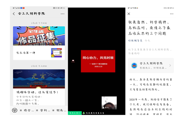 面对互联网时代的疫情防控和思想引导,学院积极发挥网络和新媒体阵地作用,策划一系列抗疫主题栏目,高频度、高质量推出网文、科普知识、法律知识、心理知识以及学生乐见的网络歌曲、漫画、家书等内容形式,利用哀悼日、国家安全日等重大纪念日积极引导学生言论和行为。辅导员、班主任和任课教师全员合力,通过线上主题班会、小班辅导、课程思政等多种形式,帮助学生提升科学素养、做到明辨是非、坚定理想信念,做到全方位、全过程、全覆盖。其中,校党委书记余其俊书记给所联系的17级金创实验班同学的一封信,在校内外和师生中引起强烈反响,极大地鼓舞了全院师生。