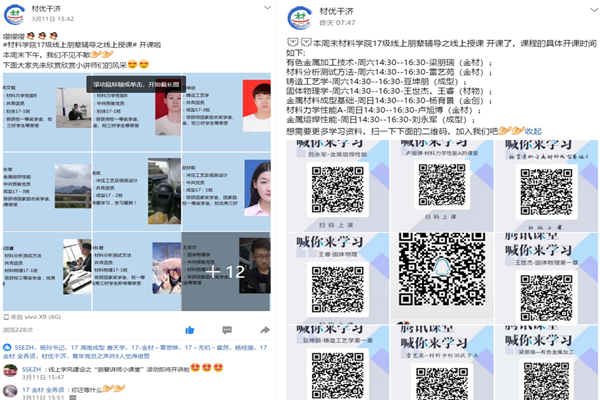 践行雷锋精神,立足促进学业发展——积极开展“材优干济”系列学风建设。为做好疫情期间线上教学服务工作,6165cc金沙总站检测中心以“学优创优,做最美材料人”为主题,立足年级QQ公众号、腾讯课堂等网络平台,建立线上学业帮扶平台,积极组织学生党员、学生骨干发挥榜样示范作用,先后推出朋辈辅导之“笔尖课堂” “知识点短视频分享” “小讲师特色课堂”等主题学风建设活动,通过分享优秀习笔记、学习经验、学习成果,加强朋辈辅导帮扶力度,帮助学生养成良好的线上学习习惯,对线上学习困难学生,开展“特色小课堂”线上朋辈交流答疑,营造了良好的线上学习氛围。