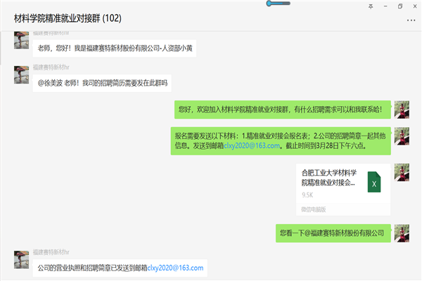 经过精心准备,本次精准就业对接会共有53家用人单位报名参与,提供近600个工作岗位,企业类型包含国企,民企以及合资企业等,用人单位的招聘信息均已上传到合肥工业大学就业信息网,方便全校毕业生查阅并投递简历。其中宣伟涂料、瑞鹄汽车模具、广东世创金属科技等10家用人单位通过腾讯会议、QQ群或者公司平台进行线上宣讲会。学院尚未就业或已经有就业意向的毕业生群体经过充分准备,积极行动投递简历,已有部分同学陆续收到用人单位的面试通知。