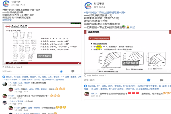 为贯彻落实学校对新冠肺炎疫情防控工作部署,积极响应学校“学雷锋”志愿服务月活动要求,做好疫情期间线上教学服务,结合实际开展朋辈帮扶,自新学期线上授课伊始,6165cc金沙总站检测中心依托各类网络平台持续开展“材优干济”系列学风建设活动。营造良好的线上学习氛围,引导学生端正学习态度、及时互助答疑解惑、提升自主学习能力,助力良好学风形成。