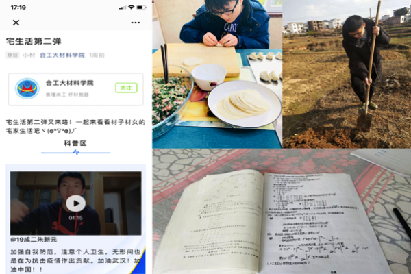 第二课堂,网络助力,弘扬正能量提振抗疫士气。疫情期间,按照“延期开学不停学”的原则,充分发挥第二课堂形式灵活多样的育人特点,运用“互联网+”思维,最大限度满足学生第二课堂发展需求。抗“疫”前期,各年级辅导员共同努力策划,已面向全体师生组织开展了“我为武汉加油”网上正能量宣传活动,积极在青年学生中做抗“疫”的宣传员,开展“抖抖你的宅生活”在线作品征集活动等活动,引导青年学生积极投身抗“疫”,鼓励同学们在家中也能合理有效利用时间,持续以读书、学习、劳动、运动等形式丰富自我,提升自我。为全力保障学生培养质量,各年级辅导员结合年度工作计划,围绕思政学习、科技创新、文化公益,精心策划学科基础知识竞赛、一封家书、读书笔记展、器物之美、原创歌曲、公益科普等线上活动,用实际行动打好疫情防控阻击战,为抗“疫”提神正气。
