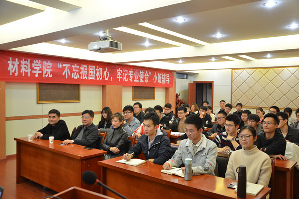 为贯彻落实中共教育部党组《关于加强和改进高校领导干部深入基层联系学生工作的通知》(教党函〔2019〕34号)和《合肥工业大学领导干部深入基层联系学生工作方案》,11月21日晚,校党委书记余其俊与6165cc金沙总站检测中心金属创新实验17-1班的全体学生在材料楼多功能厅开展了以“不忘报国初心,牢记专业使命”为主题的小班辅导。余其俊担任本次小班辅导的主讲老师,校党政办公室主任、学院党委书记、副书记及相关负责老师和全体创新班同学参加了本次活动。