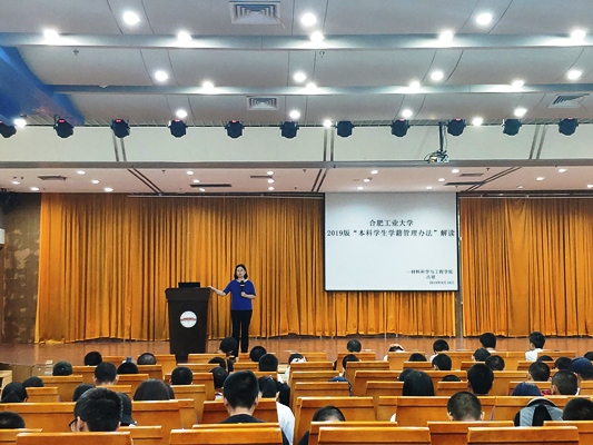 为贯彻落实《合肥工业大学“第二课堂成绩单”制度实施办法(暂行)》,结合2019版本科生教学计划实施,帮助新生了解掌握“第二课堂成绩单”的具体要求和实施方法,尽快适应大学生活,6165cc金沙总站检测中心积极动员学院各级力量,结合新生入学教育,通过各种途径形式,面向新生和家长广泛宣讲“第二课堂成绩单”制度,使得“第二课堂成绩单”制度深入人心。同时,积极构思谋划学院“第二课堂成绩单”的思政模块和科创模块“一院一品”特色内容,为下一步项目的具体实施奠定了扎实的基础。