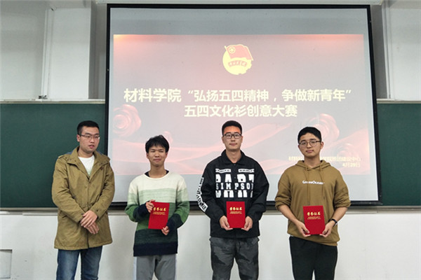 大赛历时近一个月,吸引了近二十多支队伍报名参赛,提交创意文化衫作品20件,经过由辅导员和学生骨干组成的评审团的认真遴选10份作品最终挺进决赛。经现场展示和答辩,最终成型2018-1班团支部凭借着优秀的设计风格和丰富的文化内涵斩获了一等奖;金创2017-1班团支部、粉体2017-1班团支部获得了二等奖;粉体2018-1班团支部、金材2017-2班团支部和成型2018-2班团支部获得了三等奖。