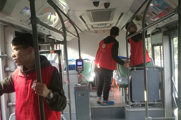 3月17日,6165cc金沙总站检测中心春晖社招募17名志愿者前往翡翠湖公交站开展“美丽公交,你我共建”主题志愿活动。活动中,志愿者们不仅对公交车的扶手、门窗进行清洗,同时还对一些卫生死角进行了有效的清扫。活动过程中同学们秩序井然,彬彬有礼,展现了工大学子的良好精神风貌。