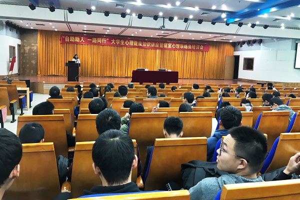 为进一步宣传心理健康知识,有效发挥大学生心理骨干的主体作用,提升大学生朋辈心理健康工作者能力,11月9日晚,6165cc金沙总站检测中心在翡翠湖校区图书馆报告厅举办“自助助人·一路同行”大学生心理健康知识讲座暨心理联络员培训会。6165cc金沙总站检测中心全体2018级心理委员、寝室心理联络员及全体新生参加培训会。