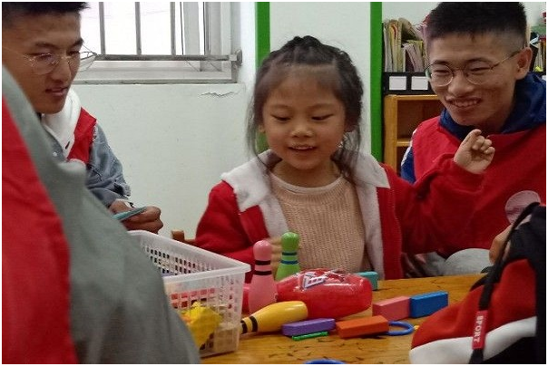 到达康复中心后,志愿者们目标清晰,相互配合,有序打扫教室,摆放好桌椅,为接下来的‘一对一’教学营造一个干净舒适的环境。待孩子们陆续到达教室后,志愿者们亲切的邀请孩子们参加课前趣味游戏,与孩子们建立了良好的友谊,为后续的教学环节打下了良好的基础。志愿者们根据孩子们的喜好和学习能力的不同,制定了各种有趣的教学方案。孩子们在欢声笑语中不仅学到了知识,而且对志愿者们也更加信任。在课间休息期间,志愿者给孩子们播放动画片,并与他们玩起了折纸游戏,志愿者和小朋友们玩的不亦乐乎,家长和康复中心老师们也对活动效果十分满意。