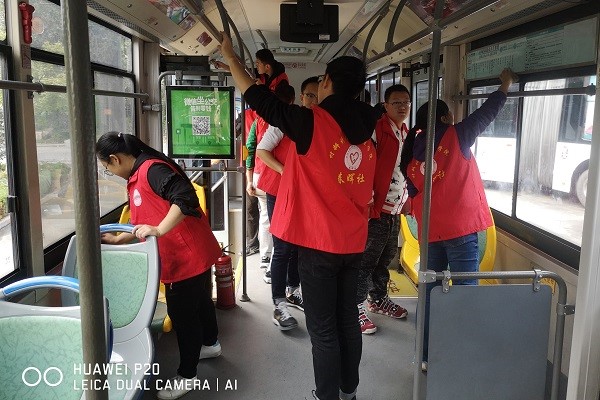 陈志浩同学说到:“清洁公交车的过程虽然感觉很辛苦,但是看到一辆辆干净整洁的公交车驶出站台,自己内心感到无比的快乐与舒心,希望更多的人能够参与志愿服务活动,人人奉献爱心,社会将会变得越来越和谐美好。”